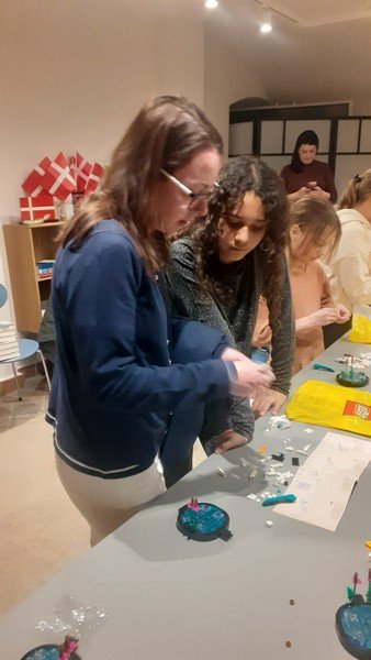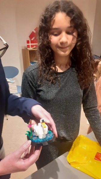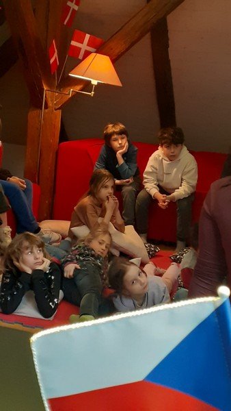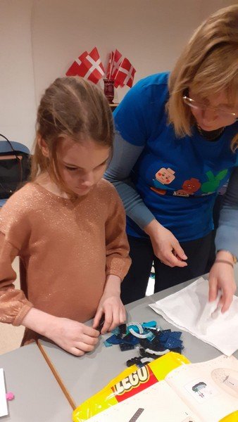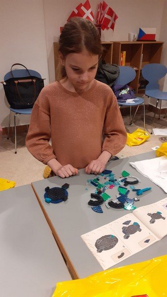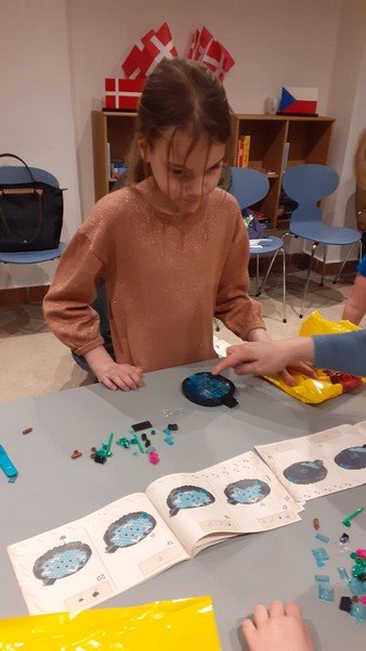 Děti si postavily z Lega ptačí symbol Dánského království - bílou labuť. Kromě toho se děti seznámily s manželkou pana velvyslance Helen, která přečetla v dánském jazyce pohádku „Hloupý Honza“ a tlumočnice Veronika pohádku dětem přeložila. Dále manželka pana velvyslance seznámila děti s Dánským královstvím. Děti se naučily tvar a barvu vlajky a dozvěděly se spoustu zajímavostí o této krásné zemi. Ještě jednou děkujeme a už se moc těšíme na příští setkání.